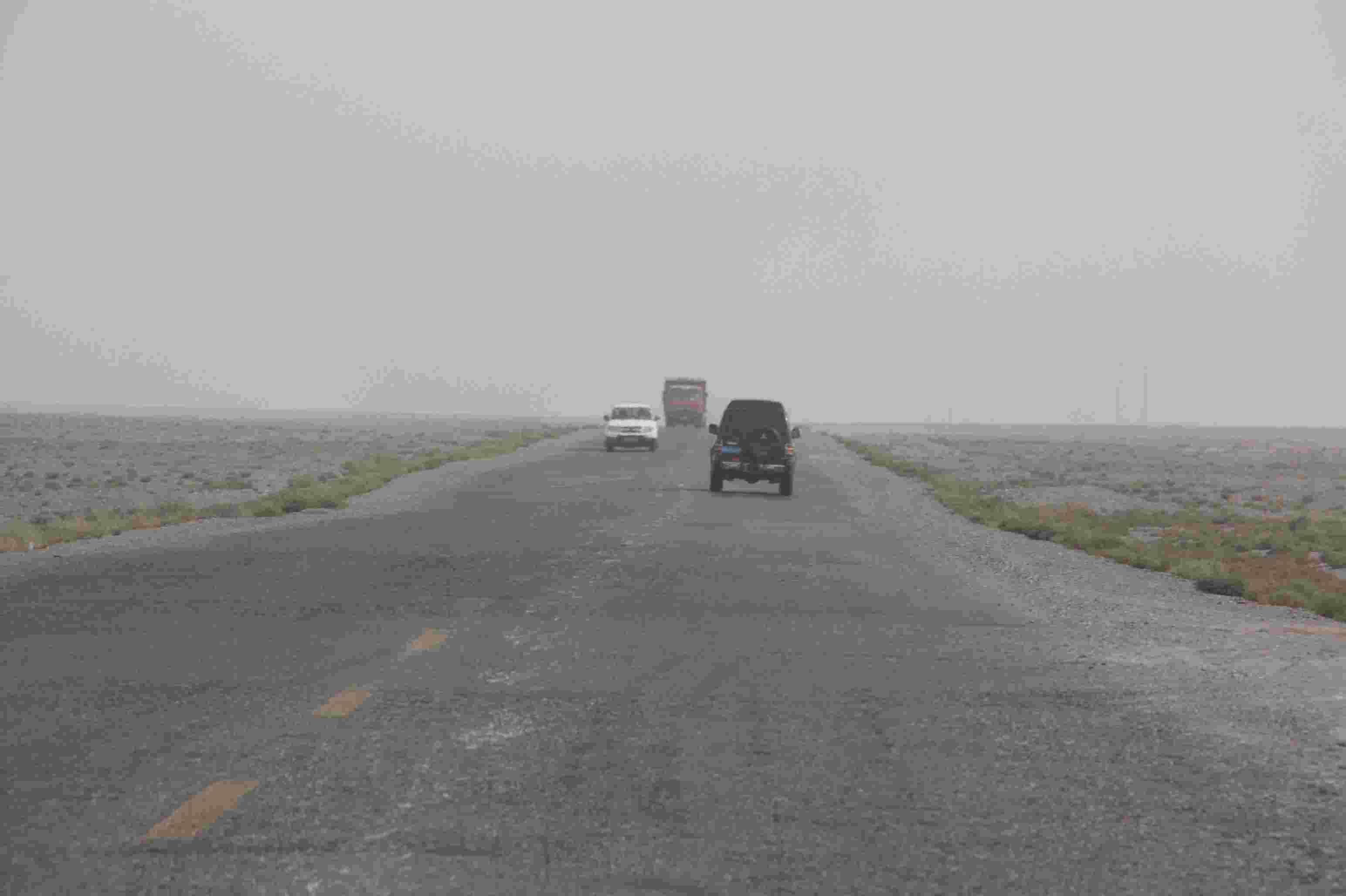 e désert du Taklamakan,l'un des plus grands au monde (environ 4 fois la Suisse), est traversé, du sud au nord, par une très bonne route de plus de 500km, bordée d'arbustes empêchant le sable d'envahir la chaussée.