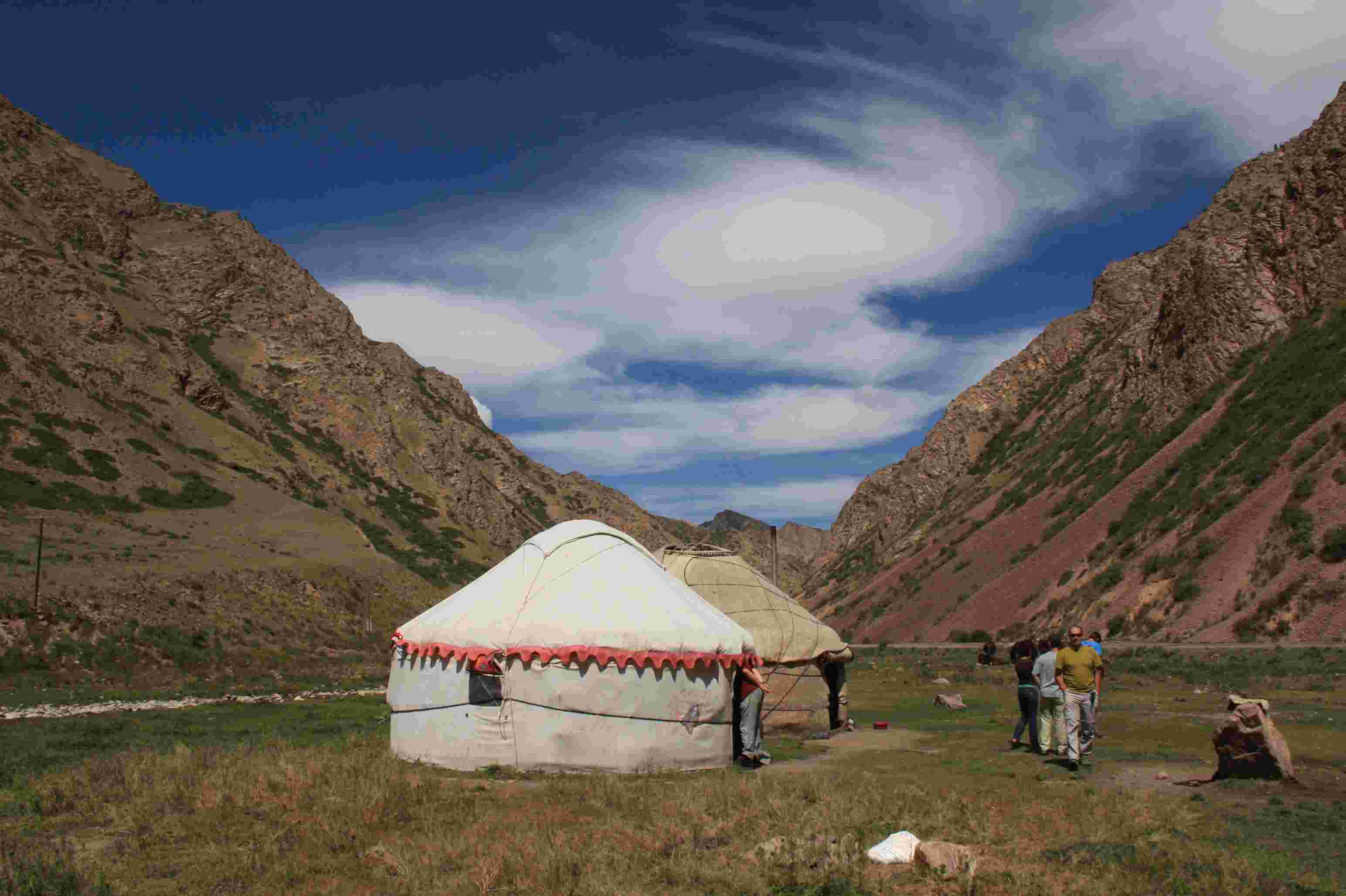 Cette longue route abouti à un village kirgiz nommé Ilik qui nous acueille en fin de soirée en nous hébergant dans leur demeure. Nous nous y reponsons sur de magnifiques nates brodées, collés les uns aux autres en quinquonce. Pour 8 rudes gaillards, la place est petite.