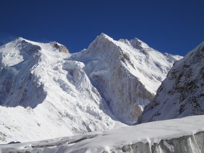 Le camp de base est surplombé par un beau sommet de neige et de glace: le Tuofeng, culminant à 6040m.