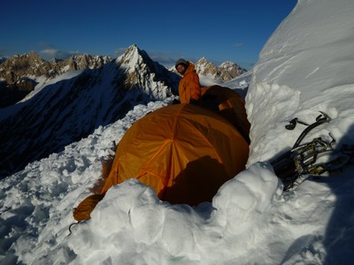 Journée tranquille pour tous, ou presque: Bernhard et Mazal ont en effet pour tâche de redescendre la tente et le reste du matériel laissé après l'abandon du Beifang, à 6 heures de marche du CB!