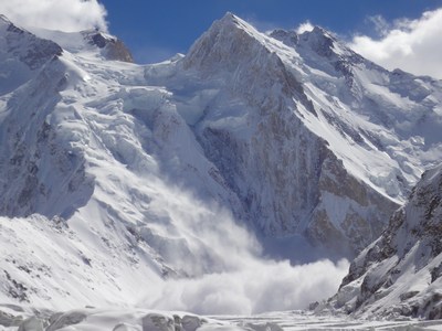 En jumelant le Beifang, nous voyons que les pentes supérieures, que nous aurions dû traverser et ou nous pensions installer le camp 4 ont été balayées par une immense avalanche: la cassure doit faire un mètre de haut! La décision de renoncer était vraiment justifiée....