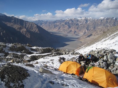 L'équipe du bas effectue deux lourds portages entre Karatash et le camp 1 avec le reste du matériel, le camp 1 est enfin installé à 4800m environ.