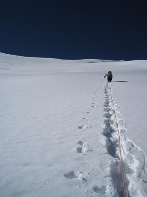Les 50 centimètres de neige fraîche ne nous aident guère dans notre progression.