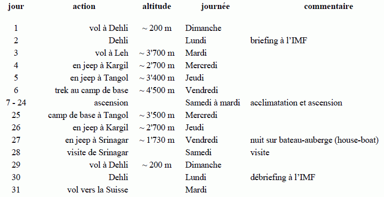 En tenant compte de la période favorable pour la pratique de la montagne dans cette région, un départ pourrait être planifié le dimanche 9 septembre 2007.