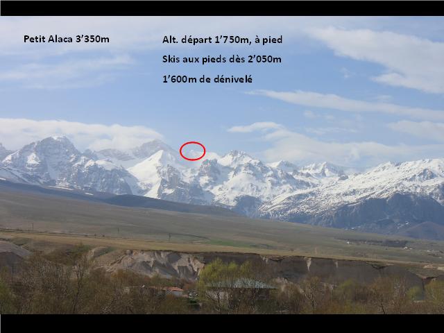 Petit Alaca (3350 m). Alt. départ 1750m, à pied ; skis aux pieds dès 2’050 m; 1600m de dénivelé